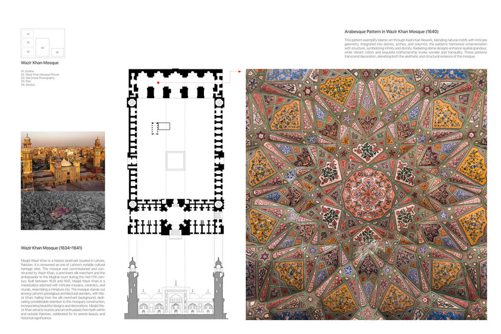 Since the discovery and study of the Topkapi scroll in 1986 there has been a renewed interest in the geometric and mathematical underpinnings of Islamic architecture and its ornament. While there is a rigorous mathematically driven logic behind these quasi-crystallin geometries, the aesthetic they produced is much more far reaching and has transformed into a cultural touchstone for Islamic culture. The techniques found in the Arabesque contain sophisticated transitions from two-dimensional pattern to two and a half dimensional relief, to fully three-dimensional and spatial formations. There are also embedded disciplinary questions of projection, drawing, and representation in architecture.